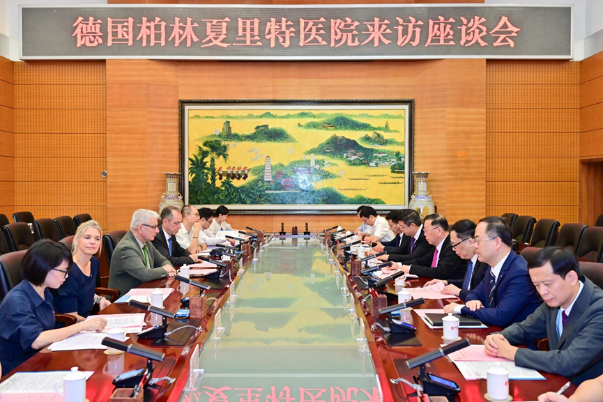 座谈会上,福州大学医学院执行院长黄剑东围绕学院概况、人才培养、学科建设、对外合作等方面,系统介绍了医学院近年来的发展历程与整体情况。附属省立医院及福建省妇幼保健院负责人也分别介绍了本单位的发展情况。德方代表分享了柏林夏里特医院在临床医疗、科研创新与医院管理方面的经验与成果。双方围绕医学教育模式创新、学科群建设、跨学科研究及医院管理模式等内容进行了深入交流,并达成了初步合作意向。
