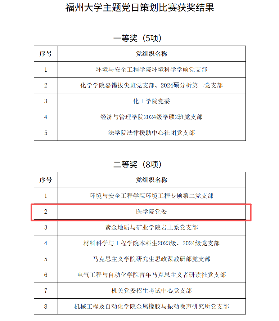 近日,学校党委组织部公布了福州大学主题党日策划比赛获奖结果,医学院党委《“‘医’心铸魂守初心,‘医’行服务担使命”》策划荣获二等奖。