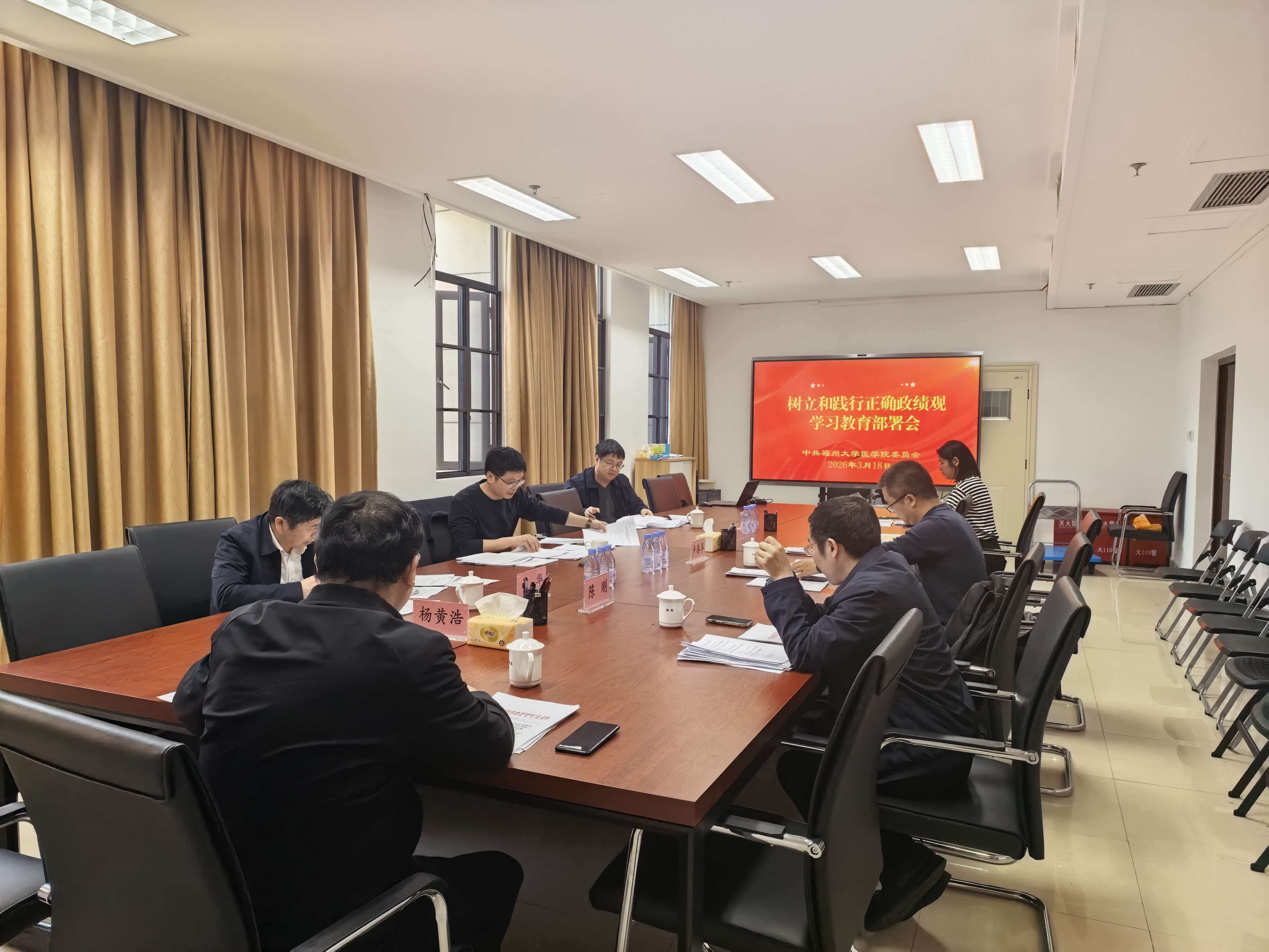 会议强调,开展树立和践行正确政绩观学习教育,是对坚定拥护“两个确立”、坚决做到“两个维护”的重要政治检验,是落实立德树人根本任务、服务“健康中国”“健康福建”战略的必然要求,也是推动学院高质量发展的关键举措。会议要求全体党员干部切实提高政治站位,把思想和行动统一到中央、省委和学校党委的决策部署上来,一体推进学查改,以高度的政治责任感和使命感抓实抓好学习教育各项工作。